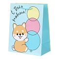 Пакет подарочный МАТОВЫЙ "Корги с шариками" 26х32 см 393009