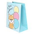 Пакет подарочный МАТОВЫЙ "Корги с шариками" 18х23 см 393011