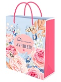 Пакет подарочный с глянцевой ламин. 26,4x32,7x8 см Сезонные цветы, розовые ППК-4463