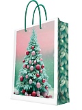 Бумажный пакет Елка бирюзово-розовый 26x32,4x12,7см арт. 93107FE