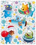 Новогоднее оконное украшение "Зверята в космосе" с раскраской, ПВХ пленка, 30х38см 90291