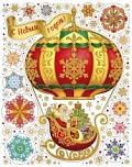 Новогоднее оконное украшение "Дед Мороз в воздушном шаре" ПВХ-пленка, с раскраской 30х38см 90278