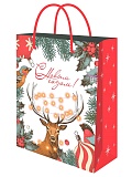Пакет подарочный из крафт-бумаги 18х23х30 см Новогодний олень ППК-2326